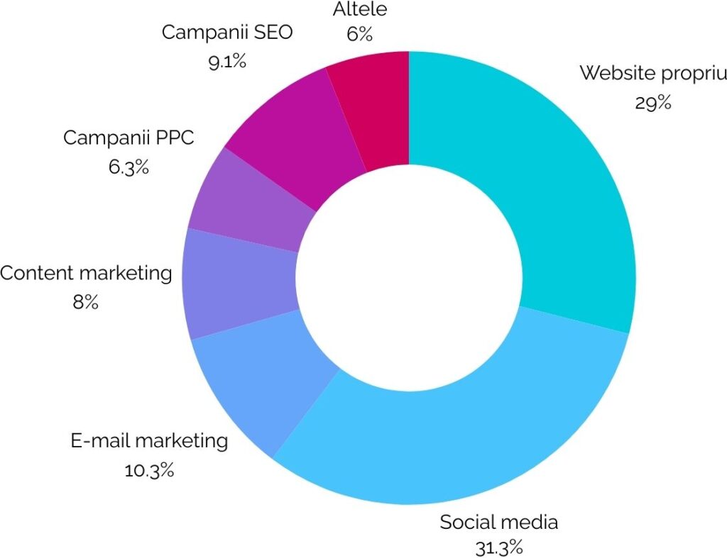 În acest sens, respondenții văd ca profitabilă comunicarea pe următoarele canale: Social Media (în procent de 31,3%), website-ul propriu (29%), e-mail marketing (10,3%) și campaniile SEO (9,1%).