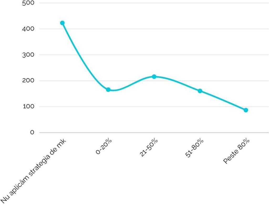 Mai mult, 60,64% dintre antreprenori au declarat că nu au reușit să implementeze strategia lor de marketing decât în proporție de sub 50%.